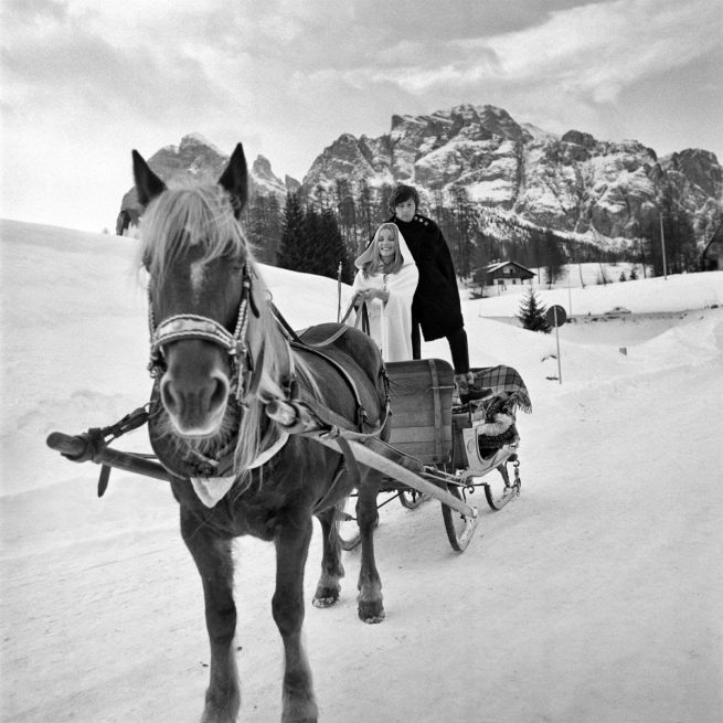 Elisabetta Catalano, Roman Polanski e Sharon Tate a Cortina per le riprese del film Per favore non mordermi sul collo, 1968/1969 circa (courtesy Archivio Elisabetta Catalano)