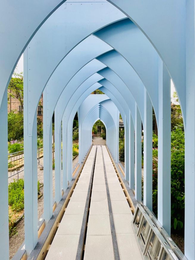 L’architetta franco-libanese Annabel Karim Kassar, per Rubner Haus, Abs Group e Valpaint, porta all’Orto Botanico di Brera l'opera Garden of the Esperides, una visione sospesa tra memoria e invenzione, in cui il mito delle Esperidi riaffiora come traccia discreta, affidata a una struttura leggera che invita a essere attraversata e scoperta piuttosto che raccontata. Un portico ligneo percorre il viale principale e orienta lo sguardo verso la meridiana, simbolo dello scorrere del tempo, mentre lungo i vialetti le icone femminili dipinte a mano dalla progettista si dispongono in cerchi geometrici, trasformando il giardino in un teatro di presenze sospese. Ogni figura dialoga con la natura circostante: alberi, fiori, vuoti e pieni diventano parte di un racconto che unisce il mito all’esperienza concreta del visitatore.