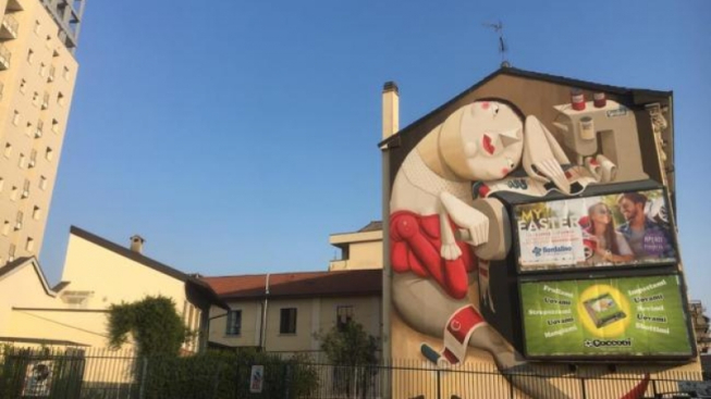 Da quattro mesi cattura l’attenzione di milanesi e turisti che passano da via Brembo. È il fotografatissimo murale CuciMilano, realizzato durante la Milano Design Week 2017 dallo street artist Zed1 per Madama Hostel & Bistrot. Un omaggio al Madama e a Milano: una sarta che cuce insieme le bandiere di tutto il mondo, a indicare la natura del capoluogo lombardo, città della moda per antonomasia, e l’internazionalità dell’ostello-bistrot.