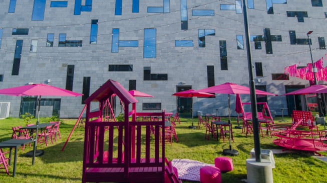 Il Kindergarden, pop up estivo inaugurato con l’inizio della bella stagione è un’oasi verde di 600mq dal design total pink e un soffitto open air di nastrini svolazzanti e fili di luce. Un colore, il fucsia, che tinge il bancone del bar e il parco giochi con i suoi scivoli, tunnel, altalene e caroselli girevoli di una tonalità che immediatamente porta alla mente ricordi d'infanzia. Ed è proprio questo il concept del Kindergarden di Arca Milano: creare un luogo dove tornare bambini, dove scoprire la propria personale madeleine de Proust, sia essa un colore, un profumo o un sapore che evoca un ricordo del passato. L’intento è quello di far riemergere la fanciullezza per qualche momento, abbandonando tutti i pensieri, le difficoltà della città e tornando ad emozionarsi per quei piccoli dettagli che poi tanto insignificanti non sono mai stati.