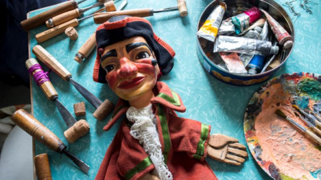 Valerio Saccà è oggi non solo uno dei più giovani burattinai d’Italia, ma anche l’unico a portare avanti una tradizione storica, artistica, artigiana e identitaria per la città di Milano che rischiava di scomparire: quella del teatro di burattini del Meneghino. Nella mostra sono esposti, oltre ai suoi, anche un gruppo di burattini storici del Meneghino dal 1890 a oggi, tratti dalle principali collezioni italiane tra cui Fondazione Benedetto Ravasio di Bergamo e l’Associazione Peppino Sarina di Tortona. Tra questi in particolare un pezzo dal fondo Cortesi: il Meneghino di Giorgio Minutoli, burattinaio milanese che negli anni ‘50 del Novecento si esibiva al circolo dei Piccoli Motta in Galleria Vittorio Emanuele. Tra il materiale storico in esposizione anche i preziosi costumi indossati durante il Carnevale Ambrosiano (fondo Famiglia Meneghina).