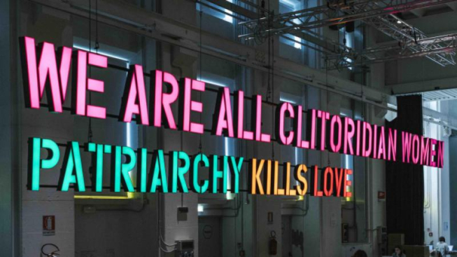 Base Milano accoglie i visitatori con Cancel Patriarchy, un’installazione luminosa site-specific dell’artista collettiva Claire Fontaine visibile per tutta la settimana del fuorisalone e fino primo settembre 2023 nella Ground Hall di ingresso. L’installazione è composta da due scritte led di Claire Fontaine, artista collettiva fondata da James Thornhill e Fulvia Carnevale nel 2004 a Parigi e che dal 2017 vive e lavora a Palermo. Il pubblico è accolto dalle frasi monumentali Patriarchy kills (love) e We are all clitoridian women: affermando che il patriarcato uccide (l’amore) e che siamo tutte donne clitoridee, l’artista regala parole che interpellano, sollecitano, provocano. Il titolo Cancel patriarchy evoca l’idea che l’invisibilizzazione dei colpevoli dei gesti di oppressione patriarcale vada applicata al patriarcato come forza sistemica, poiché non è la sua riforma, ma la sua abolizione a costituire l’orizzonte dell’artista. L’installazione è un omaggio a Carla Lonzi, in cui la donna clitoridea rappresenta il piacere rivoluzionario negato dall’oppressore, il soggetto imprevisto che, al di fuori delle griglie di lettura abituali della società, insorge e fa apparire nuove possibilità di libertà.