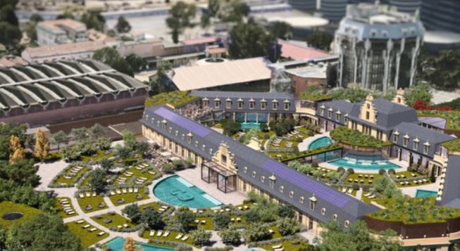In quest’ottica, la creazione degli spazi interni totalmente adibiti alle esperienze di benessere e relax è stata realizzata con la costruzione di una struttura in acciaio autoportante che permette lo scarico dei pesi sulla stessa, senza impatto sulla facciata storica. Solo nella meravigliosa corte esterna ci saranno cinque grandi vasche di acqua termale, di cui una, ad esempio, che si staglia davanti alla facciata con fontane a giochi d’acqua e tre piscine dedicate alla balneoterapia.