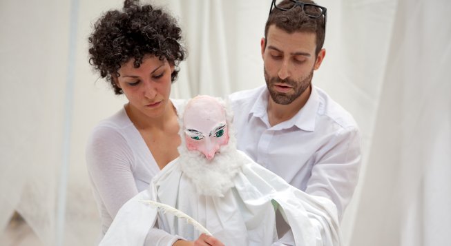 Tra le pieghe dei tessuti si nascondono le trame. Le trame, a chi ascolta con attenzione, sussurrano personaggi, ambienti, storie. Bisogna, forse, essere dei bravi sognatori. E quando la storia è pronta (o quasi), non resta che trovare qualcuno disposto ad ascoltarla. Questa volta, la sognatrice e il capocomico hanno scoperto fra le trame dei tessuti un racconto che parla di un paese tutto bianco, immerso nell’inverno, nel freddo e nella neve. Protagonisti sono i piccoli uomini, abitanti di quel regno di ghiaccio, che tagliano alberi sulla cima delle montagne.