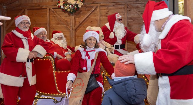 Un incantevole gruppo di 15 Babbi Natale, a bordo di una slitta magica, aspetta i bambini di Milano in via Silvio Pellico, offrendo un momento unico di gioia e spensieratezza. I più piccoli possono incontrare i Babbi Natale in una suggestiva capanna natalizia, dove li aspettano dolcetti e melodie festive.