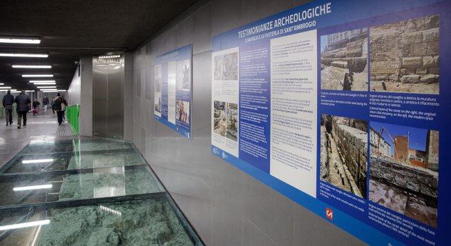Grazie alla posa di pannelli trasparenti, percorrendo il tunnel è possibile ammirare i resti delle antiche mura medievali ritrovate nel corso degli scavi: le mura che cingevano la città furono costruite dopo le distruzioni inflitte dall’imperatore Federico I tra il 1157 e il 1158, si sviluppavano seguendo il fossato scavato prima dell’assedio e realizzato a protezione non solo del nucleo antico della città ma anche dei borghi cresciuti all’esterno delle mura di età romana.