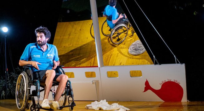 Per raccontare Andrea Stella ci vorrebbe un'enciclopedia: skipper in sedie a rotelle, imprenditore, uomo di relazioni, ambasciatore della disabilità, nominato Cavaliere della Repubblica, ambasciatore di pace nel mondo. Questo spettacolo di 90 minuti unisce strappi, sovrappone fatti, volti, desideri, appiccica gli intrecci inaspettati del caso - se di caso si tratta - e cerca di riunire in tutti i modi un punto di partenza ad un punto di arrivo. La semplicità è il seme dello spettacolo, capace di far ridere e far piangere. Quella semplicità che diventa linfa vitale per la propria rivincita, i sogni, i progetti, la fatica, le difficoltà, l’impegno e le vittorie.