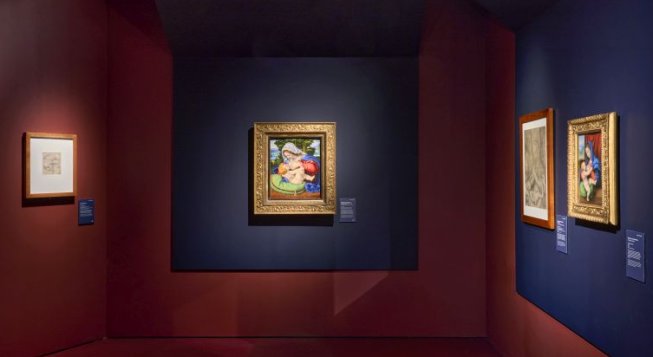 Il percorso espositivo, firmato Migliore+Servetto, è fatto di accenti e pause, attraverso l’introduzione di quinte centrali inclinate e fondali a doppia inclinazione che abbracciano le opere in gruppi tematici, definendo così un ritmo di lettura e di significato rispetto al loro posizionamento. A far da protagonista il colore bordeaux: una