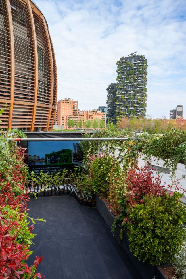 architettura moderna e sostenibile, che si integra perfettamente nel contesto urbano senza lasciare traccia. Il progetto vede la partecipazione di Ersaf Lombardia che opera per la tutela delle aree forestali nella regione. Il Vivaio Forestale Regionale, sito a Curno (Bergamo), si occupa della produzione di piante forestali autoctone di provenienza locale. L’attività riguarda nello specifico la raccolta e la conservazione del seme, la coltivazione delle piante e la loro distribuzione.