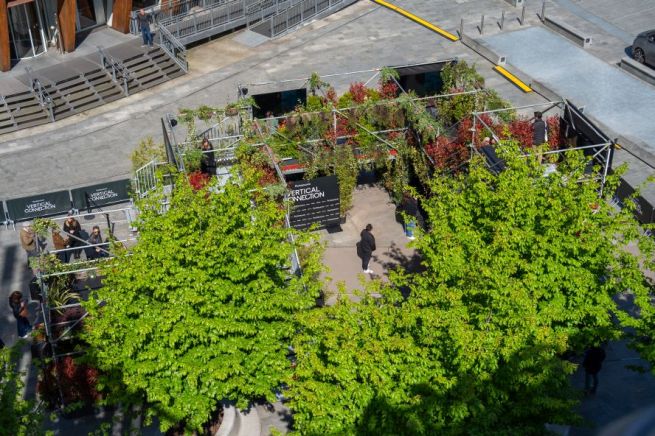 L’installazione, firmata dallo studio Evastomper con la curatela scientifica del neurobiologo ed esperto di botanica Stefano Mancuso, si sviluppa come una struttura modulare in layher, completamente percorribile e accessibile anche in quota. Un viaggio tra architettura e natura, in cui la vegetazione diventa un elemento essenziale per esprimere il concetto di rigenerazione urbana e sostenibile.