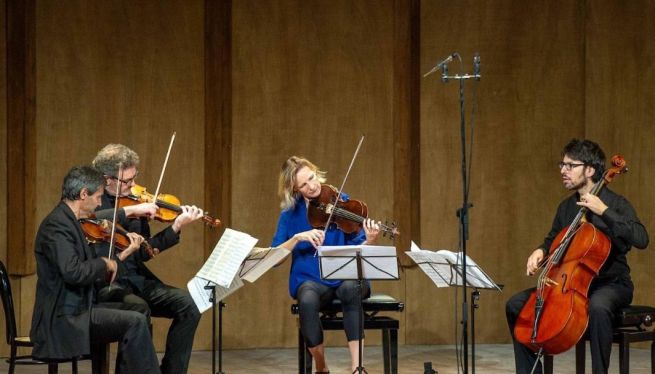 Si inizia quindi nel pomeriggio, ancora con la luce del giorno, e si prosegue fino a notte inoltrata, in compagnia di tre tra i migliori quartetti d’archi italiani, a partire dal Quartetto Prometeo. Formazione riconosciuta quale veterana dell’interpretazione del repertorio musicale contemporaneo, all’attivo un rapporto intenso con compositori del calibro di Salvatore Sciarrino, Ivan Fedele e Stefano Gervasoni - vincitore della 50° edizione del Prague Spring International Music Competition già nel maggio 1998 e Leone d’Argento alla Biennale di Venezia, nel 2012 - si compone di Nurit Stark, primo violino, Aldo Campagnari, secondo violino, Danusha Waskiewicz, viola e Francesco Dillon, violoncello.