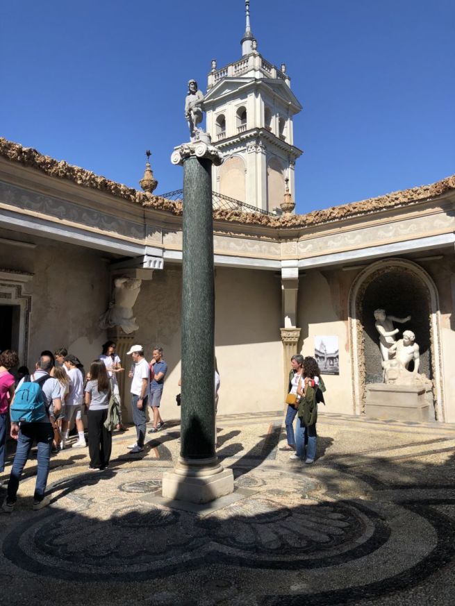 Il restauro ha restituito nuova vita alle decorazioni a mosaico e alle statue che adornano il cortile, ma soprattutto ha permesso il ripristino completo degli ingegnosi meccanismi idraulici cinquecenteschi, capaci di ricreare l’effetto di una pioggia finissima e scenografica che scende dai cornicioni e dalla colonna centrale in marmo verde, sorprendendo i visitatori in un’esperienza multisensoriale. Una vera e propria macchina teatrale dell’acqua, che fonde arte, natura e ingegneria rinascimentale, pensata per stupire gli ospiti con un raffinato gioco di illusioni e freschezza. Il Cortile delle Piogge non è solo uno spazio architettonico: è un’esperienza viva, che oggi torna a emozionare come accadeva oltre quattro secoli fa. Il restauro, frutto di un accurato lavoro filologico e di una sinergia tra esperti restauratori, storici dell’arte e tecnici idraulici, rappresenta un nuovo capitolo nella rinascita di Villa Litta, sempre più centro culturale e attrattiva d’eccellenza per il territorio.