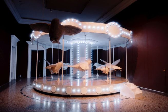La giostra di Nina - Con La Giostra di Nina esplode la naturale predisposizione di Berruti a trasportare il pubblico in territori che sono allo stesso tempo memoria e proiezione futura, nella consapevolezza che l’arte è cultura e che questa è attraversamento delle esperienze e della storia di ognuno, che può essere allo stesso tempo orto che germoglia e ghetto che soffoca. Ancora una volta la dualità, dunque. Berruti usa anzitutto passerotti, e non cavalli, dicendo che è assurdo che persino nelle giostre limitiamo la nostra fantasia cercando di attenerci alla realtà. Perché non possiamo cavalcare degli uccellini? In questa opera, forse la più nota di tutta la carriera di Berruti ed esposta in importantissimi musei, l’artista parla dell’infanzia non mostrando i bambini per la prima volta: è il pubblico a completarla. Anche se, guardando la sala da un altro punto di vista, gli uccellini sono scappati. Si sono liberati e decideranno loro se e quando tornare. Il cortometraggio ispirato alla Giostra di Nina vede la partecipazione straordinaria di Ludovico Einaudi, che ha firmato la colonna sonora originale di questo enorme carillon che parla di libertà, sogni, fantasia.