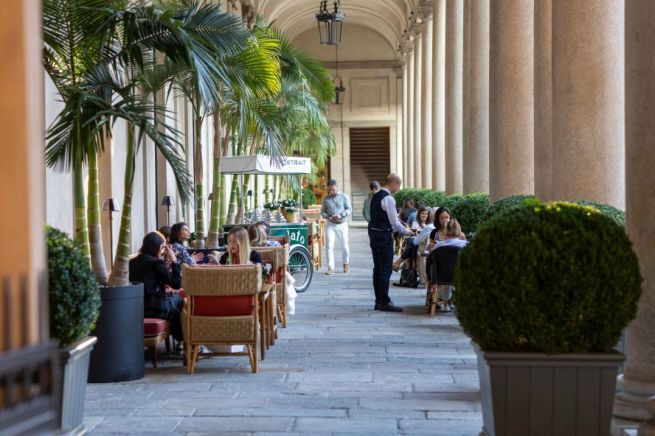 5) 10_11 Bar Giardino Ristorante. Nel cuore del Quadrilatero della Moda, all'interno dell'hotel Portrait Milano con ingresso da via Sant'Andrea 10 o da corso Venezia 11, il Ten Eleven resta aperto tutto il mese in orario 07.00-01.00 offrendo ai visitatori la sua cucina ispirata alla tradizione italiana nella quiete dell'ex Seminario Arcivescovile: dalla granita con brioche servita a colazione, alle merende estive con fragole e panna o gelati; a pranzo e a cena si possono gustare piatti come la tartare di ombrina, l’insalata di mare al vapore o la zuppetta di frutta e verdura. Completa l’esperienza una cocktail list ispirata alle feste dell’estate italiana. Per info e prenotazioni 02 367995850.
