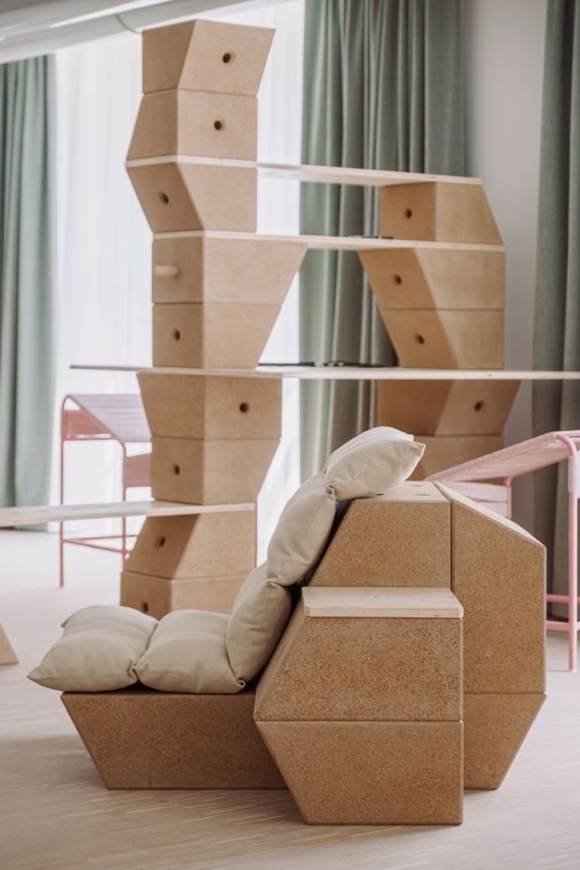 Lo studio Smarin ha proposto una soluzione flessibile che risponde alla necessità di avere uno spazio che possa essere rapidamente riconfigurato in base agli usi. In pochi minuti l’ambiente può trasformarsi per creare uno spazio di lavoro, uno studio di danza, una sala di proiezione, un'area giochi o un rifugio per un tranquillo relax. Gli elementi leggeri e modulari permettono allo spazio di aprirsi o dividersi in modo fluido, incoraggiando usi spontanei e creativi. Quando serve uno spazio libero i blocchi possono essere impilati e riposti in modo compatto, mantenendo l'ambiente libero e adattabile senza sforzo. Radicato nella vita culturale dell’istituzione, Gioco è un esperimento condiviso di design, dove bambine e bambini sono liberi di muoversi, pensare e creare.