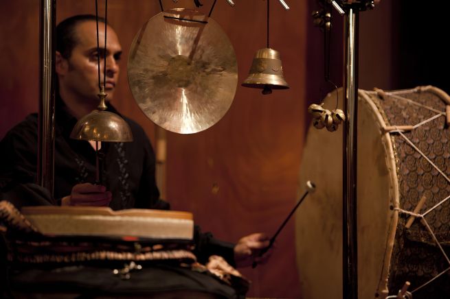 A seguire, il maestro Madjid Khaladj, uno dei massimi interpreti viventi della tradizione musicale persiana, offre un solo di percussioni che affonda le sue radici nella pratica antichissima dei tamburi a calice come il tombak e il daf. Khaladj ha dedicato la sua vita allo studio e alla trasmissione della musica classica dell’antica Persia, integrando nella sua ricerca elementi di spiritualità sufi e una straordinaria libertà espressiva. Il suo stile, raffinato e interiorizzato, è un invito all’ascolto profondo: la percussione diventa strumento narrativo, rituale, capace di evocare atmosfere primordiali e stati di trance attraverso il gesto minimo e la vibrazione del suono.