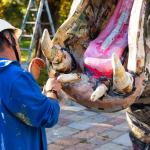La serie di animali realizzata da Allegrucci appositamente per Inequalities esprime una riflessione urgente e profonda sulla fragilità della nostra realtà ecologica e sulle disuguaglianze che segnano la nostra relazione con il mondo naturale. Le opere di Allegrucci, che traggono spunto dal processo di deperimento dei materiali, rappresentano un potente simbolo delle fratture ambientali e sociali che minacciano l’equilibrio della Terra. L’artista, riproducendo alcune specie animali a rischio di estinzione, crea un parallelismo con la condizione fragile e temporanea della materia che le costituisce. La cartapesta, materiale riciclabile per eccellenza, diventa così simbolo di vulnerabilità e deperimento destinato a subire i segni del tempo, soprattutto quando esposto direttamente agli agenti atmosferici.