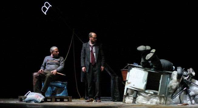Peppe, Tano e Uno non hanno più la cognizione del tempo, ma ancora tanta voglia di vivere. Sono solo tre uomini-bambini con i loro piccoli gesti, con il bisogno d’ascoltarsi, con il gusto del gioco. Disperati all’apparenza, nel loro cortile nessuno può togliergli il piacere di giocare. Non si sa da dove vengono, né quale rapporto li leghi. Lo spettacolo alterna crudele astrazione e poetico realismo, innesta le domande più aspre del presente nelle piccole ossessioni della quotidianità, con un ritmo comico e una precisione che non lasciano scampo. Il tragico ha anche effetti esilaranti: si ride molto, ma senza mai smettere di pensare.