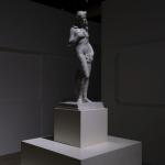 Il percorso espositivo si apre con The Artist, un’opera simbolica e fortemente evocativa che introduce i temi centrali dell’intero progetto espositivo. Il titolo, volutamente ambiguo, innesca un cortocircuito semantico e concettuale che accompagna il visitatore lungo l’intera mostra: chi è, oggi, l’artista? La mostra prosegue con una serie di installazioni inedite, immersive e interattive, accanto a opere emblematiche come Ex Human, un ciclo di ritratti generati dall’ibridazione tra intelligenza artificiale e codici iconografici umani. Volti androidi, formalmente ispirati alla scultura neoclassica, emergono da un processo generativo che interroga i confini tra umano e artificiale. Un senso perturbante di familiarità e straniamento accompagna il visitatore fin dentro il cuore della riflessione di Crespi: in che misura la tecnologia sta plasmando e ridefinendo le trame della nostra esistenza?