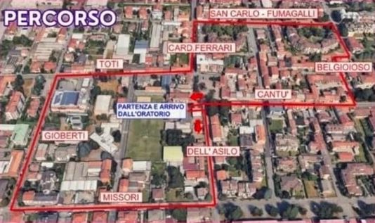 È da qui che, alle ore 14.45, parte la sfilata in maschera: a piedi, i partecipanti seguono un percorso festoso lungo le vie del quartiere, per poi rientrare in oratorio alle ore 16.00 circa.