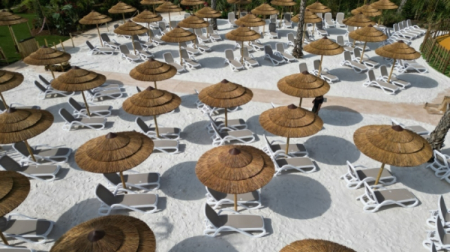 A fare da cornice alle nuove attrazioni, una grande spiaggia da 1.500 metri quadrati di sabbia bianca selezionata per non surriscaldarsi al sole. Ombrelloni in paglia, comodi lettini e grandi palme offrono inoltre ombra e zone dove concedersi bagni di sole. Chi desidera uno spazio esclusivo può scegliere di rilassarsi nell’area Cabanas Paradise, 4 gazebi in uno spazio ad accesso ristretto, comprensivi di due vasche idromassaggio a uso esclusivo. Completa l'offerta il Tiki Beach Bar, un grande chiringuito in legno con un’ampia scelta food & beverage: insalate fresche, piatti freddi, panini, gelati e sfiziosità per soddisfare tutti i gusti.