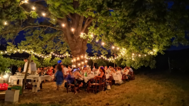 Per vivere un’esperienza immersi nella natura delle colline dell’Oltrepò Pavese alla sera, una buona idea può essere quella di realizzare una cena tra i filari dei vigneti. Sono diverse le aziende vinicole che propongono questo tipo di esperienza, organizzando ogni tanto eventi per famiglie, coppie o gruppi di amici. Tra queste c’è anche l’Azienda Agricola Calatroni, situata sulle colline di Santa Maria della Versa. La cena prevede alcuni antipasti con prodotti tipici, un risotto, un secondo di carne e un dessert, il tutto sempre accompagnato con i vini della zona. Naturalmente la specificità dell’esperienza sta nell’atmosfera in cui si svolge la cena, tra i filari illuminati dei vigneti, ascoltando i suoni e godendo dell’atmosfera del posto. Per ulteriori informazioni su questo tipo di esperienze visitare il sito dell’Azienda Agricola Calatroni.