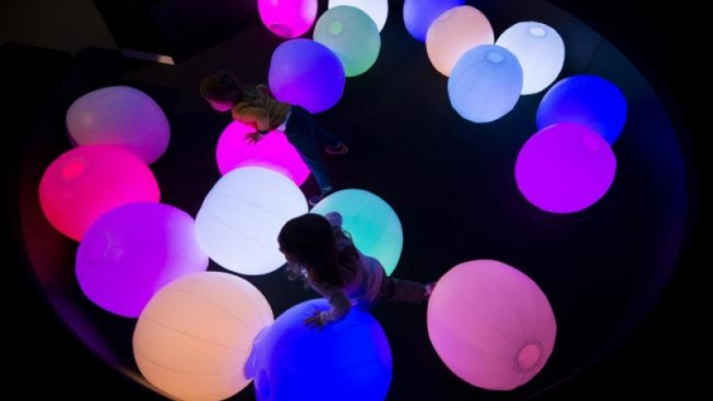 La prima area che i bambini incontrano è Light Ball Orchestra, installazione ambientale in cui i visitatori sono incoraggiati a interagire con una serie di sfere luminose che mutano colore e suono, rispondendo agli stimoli esterni generati dai movimenti dei bambini, fino a formare un’orchestra. Altre sfere sospese reagiscono ai cambiamenti delle sfere a terra, modificandosi in base all’interazione dei partecipanti.