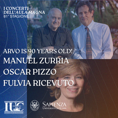 Presso l'Università La Sapienza di Roma si terrà il concerto ARVO PART 90, ZURRIA/PIZZO/RICEVUTO. Questo evento fa parte della serie I Concerti dell'Aula Magna 2025 - 2026, offrendo un'esibizione live che celebra il compositore Arvo Pärt. Un'opportunità per gli appassionati di musica di immergersi nel repertorio di uno dei più influenti compositori contemporanei.