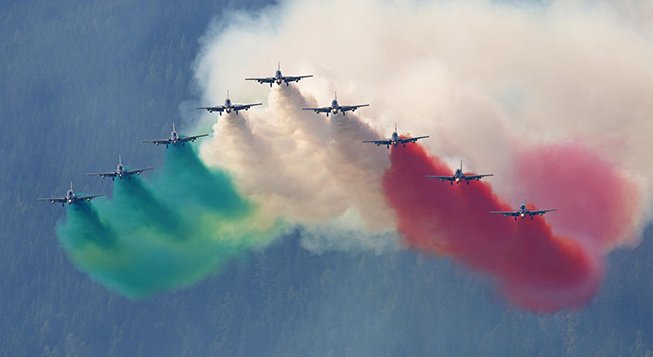 Le Frecce Tricolori, nate nel 1961, rappresentano con fierezza l'Italia in tutto il Mondo. Con una flotta che conta ben 10 aerei, la cui base operativa è a Rivolto, in Friuli-Venezia Giulia, le Frecce sono il fiore all'occhiello dell'Aeronautica Militare Italiana.
