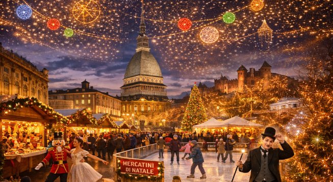 Torino la sua provincia entrano nel clima del lungo fine settimana natalizio, diventando un grande scenario a cielo aperto dove tradizioni, arte e spettacolo convivono sotto le Luci d’Artista che accendono strade e piazze.