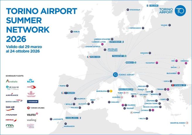 «La stagione estiva 2026 si presenta come la più ricca di sempre e questo rappresenta per noi motivo di grande soddisfazione», commenta Andrea Andorno, amministratore delegato di Torino Airport: «dopo aver superato i 5 milioni di passeggeri nel 2025, l’ampliamento del network, l’incremento delle frequenze e la messa in vendita sul mercato di 700 mila posti aggiuntivi testimoniano l’efficacia del lavoro svolto insieme ai vettori. L’ingresso di Finnair e l’apertura del collegamento con Helsinki rappresentano un passaggio particolarmente rilevante, perché rafforzano in modo strutturale la connettività internazionale dello scalo. Il terzo aeromobile in base di Ryanair e la forte crescita di Wizz Air confermano inoltre l’attrattività dell’aeroporto e la solidità della nostra strategia di sviluppo, orientata a garantire connettività, competitività e nuove opportunità di crescita per l’intero sistema territoriale. L’ampliamento dell’offerta consente anche di viaggiare sfruttando ottime combinazioni di risparmio e comodità».