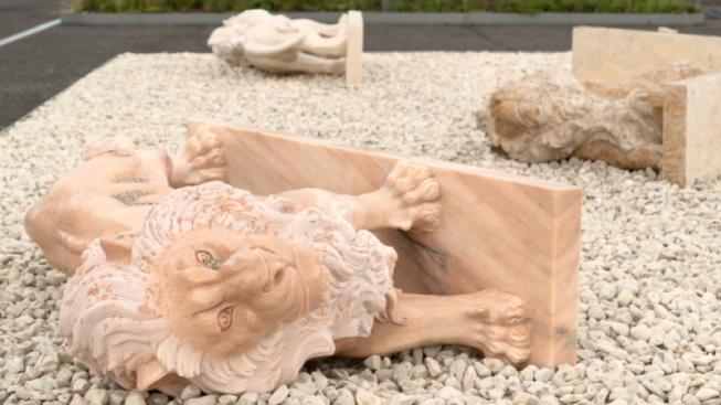 L’installazione The Guardians suggerisce la possibilità che i guardiani leonini possano lasciare i loro posti designati e invadere nuovi spazi.