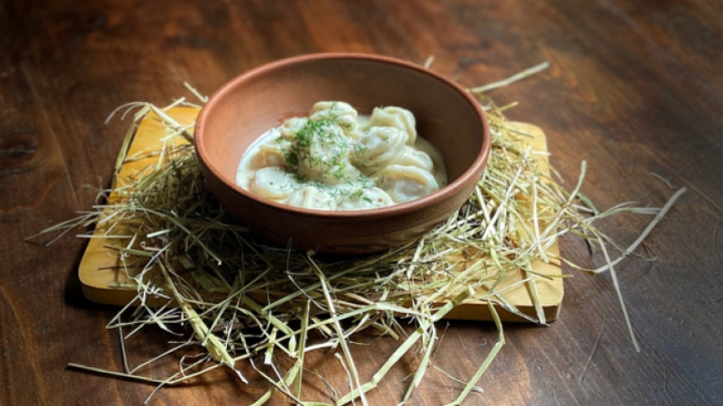 Tra gli antipasti spiccano la tradizionale e fresca Shuba, a base di verdure bollite, aringa affumicata, barbabietola rossa, uova e maionese e la Tartara Mongola: una battuta di cavallo con burro al ribes, cetriolino fermentato e paprika a fiocchi direttamente dalla Mongolia. Particolare è stato il Fabergé, ovvero tuorlo d'uovo marinato, uova di salmone e sedano rapa caramellato.