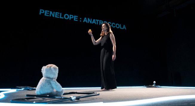 La nostra P, bloccata in questo spazio, itera il suo fare e disfare la scena - come la Penelope omerica faceva e disfaceva la tela – raccontandosi, ricostruendo il suo passato e immaginando il suo futuro.