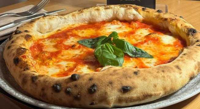 Abbiamo proseguito con l'assaggio della pizza con impasto di farina di grano tenero del molino Bongiovanni, in particolare della Che sciavuru: paté di oliva nera siciliana, salsiccia di suini di Muncalè e cipolla di Giarratana in agrodolce; fuori cottura stracciatella di Gioia del Colle e pomodorino ciliegino di Pachino semi-dry. Il tutto è stato accompagnato dall'Alta Langa Brut 2020 Cinquecento di Vite Colte, dal gusto pieno e ricco caratterizzato da una buona acidità e da una sensazione di cremosità data dalla spuma fine e che pulisce la bocca.