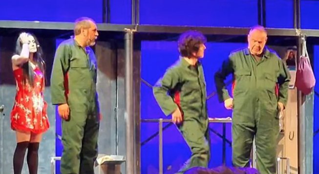 Sono sette in scena, con la tuta verde da lavoro. Alle loro spalle un’impalcatura di ferro, praticabile, che ricorda lo spazio di una fabbrica. Commedia dolce-amara, Il turno di notte è scritto e diretto da un regista lucano che ha deciso di portare in scena una storia che, chi come lui vive a Melfi, ha conosciuto in questi anni e conosce molto bene. La trama si ispira, infatti, alla vicenda degli operai della Stellantis e per la drammaturgia Francese ha preso spunto dai racconti reali dei protagonisti. Un episodio fatale rinchiude alcune persone in uno spogliatoio dove inizia un duro confronto fra sei operai prima e un dirigente francese dopo. Uno spettacolo originale e appassionante in cui l’intenso coinvolgimento emotivo sconfina in momenti di intelligente ilarità. Al centro, il difficile momento che la classe operaia (nel caso specifico, quella metalmeccanica) vive in Italia. Un efficace equilibrio tra l’approccio realistico alla dimensione popolare e la distorsione grottesca delle figure in campo rende Turno di notte uno spettacolo che fa ridere e pensare. Una riflessione profonda e acuta sul futuro della classe operaia e la sua crisi identitaria. Un lavoro inedito scritto dall’autore per la storica Compagnia Opera.