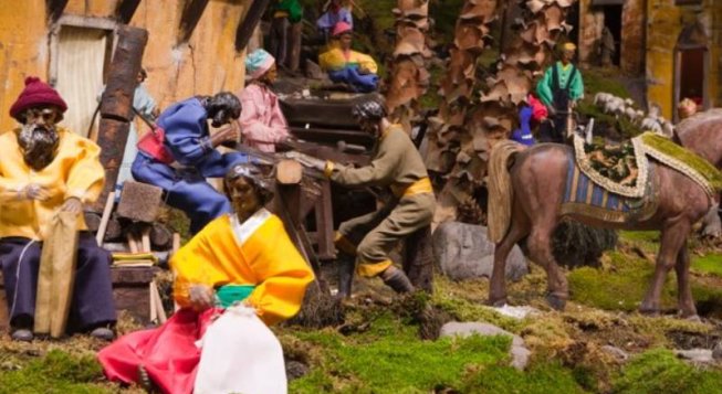 Buona parte delle statue sono in legno e le più pregiate sono state espressamente scolpite per questo Presepio da maestri artigiani della Val Gardena.