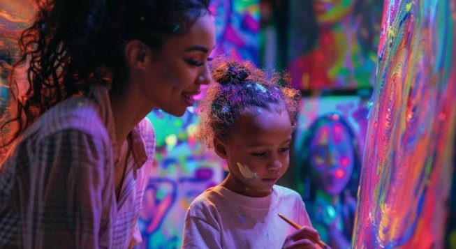 Neon Brush Kids offre un'esperienza artistica unica pensata per il divertimento di tutta la famiglia, dove genitori e figli possono immergersi nel magico mondo della pittura al neon. Questa attività rappresenta un'occasione speciale per trascorrere del tempo di qualità insieme, stimolando la creatività in un ambiente giocoso e coinvolgente, grazie alle vernici fluorescenti che prendono vita al buio.