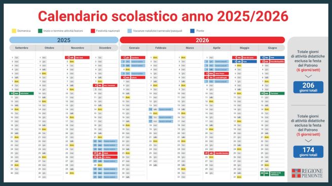 La Giunta regionale del Piemonte ha approvato il calendario scolastico per l’anno 2025-2026, su proposta della vicepresidente e assessora all’Istruzione e al Merito Elena Chiorino. Le lezioni inizieranno mercoledì 10 settembre e si concluderanno mercoledì 10 giugno per la scuola dell’obbligo, mentre per le scuole dell’infanzia la fine dell’anno scolastico è fissata per martedì 30 giugno.
