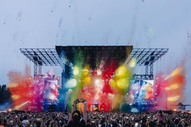 L’apertura e la chiusura del concerto sono due aspetti fondamentali: lo show si apre con un gesto spettacolare che rompe immediatamente ogni convenzione: durante le prime note di “Hello World”, 18 cannoni da stadio sparano in simultanea 300 kg di coriandoli a forma di pixel colorati, per un totale di oltre 3000 kg utilizzati nell’intero tour. È un’esplosione visiva sorprendente, solitamente riservata ai finali di show, che qui invece anticipa tutto, facendo letteralmente sparire il palco e la band alla vista del pubblico per qualche istante sotto una colonna di coriandoli. Anche la scaletta conferma questa impostazione controcorrente: i primi brani proposti sono tra i più amati dal pubblico (Giovani Wannabe, Ringo Starr, Romantico ma muori), scelti con l’intenzione di iniziare subito con il massimo impatto emotivo ed energetico, anziché conservarlo per la chiusura