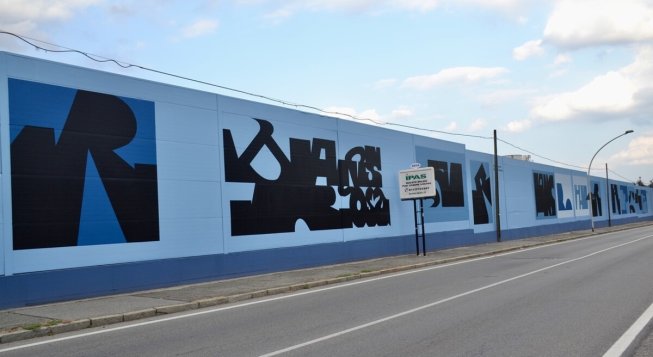 L’opera, dipinta sulla facciata industriale della ditta Oma in via Grandi, si estende per 200 metri di lunghezza e 5 di altezza, arrivando a occupare quasi un chilometro quadrato di superficie. Il progetto è nato – come spiegano gli artisti – dal desiderio di restituire dignità e bellezza a uno spazio trascurato, trasformandolo in un luogo capace di dialogare con il paesaggio urbano in modo armonico, senza aggiungere rumore visivo né imporre narrazioni.