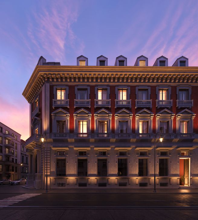 Edoardo Follo, co-fondatore di Vertico, aggiunge: «Il bunker di Palazzo Alfieri è un po’ la versione 3.0 della Torino sotterranea del passato. Ma oltre al bunker, Palazzo Alfieri custodirà un’altra chicca: un chiostro contemporaneo, cortile interno a pianta quadrata che funge da fulcro distributivo dell’intero complesso residenziale. Abbiamo trasformato lo spazio destinato in passato agli sportelli bancari in un luogo architettonico di grande valore, mantenendo il disegno originario in marmi policromi, restaurati e riposizionati. Le architetture dialogano attraverso simmetrie rigorose, mentre le grandi vetrate creano un ritmo equilibrato di trasparenze e superfici. La bellezza più pura nasce dai giochi di luce che, filtrando su queste geometrie, generano profondità e riflessi cangianti nel corso della giornata».