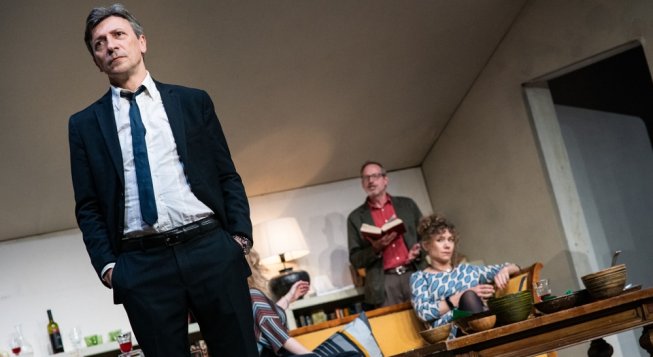 Oltre ai padroni di casa, ci sono il fratello di lei che fa l’agente immobiliare e la sua compagna in ritardo a causa di un impegno di lavoro con dei giapponesi, mentre l’amico single è trombonista in un’orchestra sinfonica. Quella sera, il fratello comunica alla compagnia che diventerà padre. Congratulazioni, baci e abbracci e le solite domande: sarà maschio o femmina, che nome gli metterete? Il futuro papà non ha dubbi sul fatto che sarà un maschio, ma il vero dramma divampa quando lui rivela il nome che intende dargli.