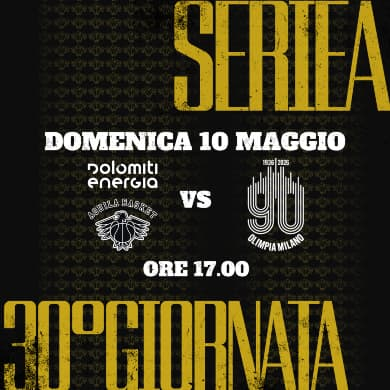 Domenica 10 maggio, la BTS Arena di Trento ospita Dolomiti Energia Trentino - Ea7 Emporio Armani Milano, incontro di basket valevole per il campionato italiano di pallacanestro. La partita vede fronteggiarsi due delle squadre più rappresentative della Serie A, la formazione trentina e il club milanese legato al marchio Emporio Armani. L'appuntamento è fissato per le ore 17:00.